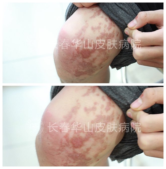 现病史:最初时,腿部出现红色如栗粒样大小丘疹,用过偏方和药膏涂抹,没有看到明显效果,病情反而越发严重,逐渐扩散到了胳膊、后背、头部。患者的病情比较复杂,因长期饱受银屑病折磨、并且病情日渐加重,遂来我院就诊。